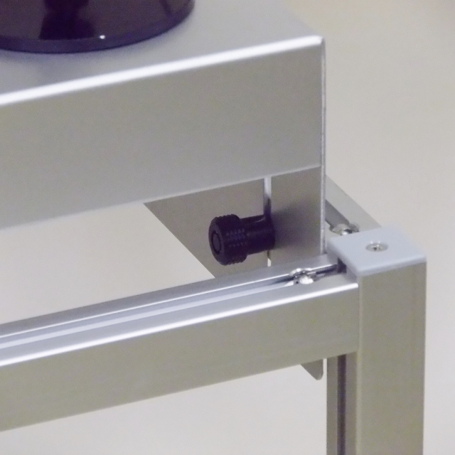 テーブル面は高さ65〜75cmで調整可能。キャスター付きで移動も楽々。