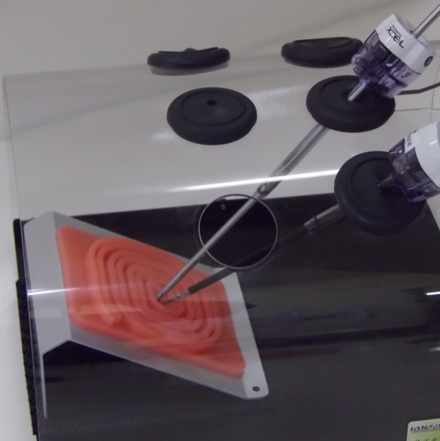 丈夫で滑りにくいです。TAPPの腹膜閉鎖縫合ような傾斜のある状態での縫合の練習に使えそうです。